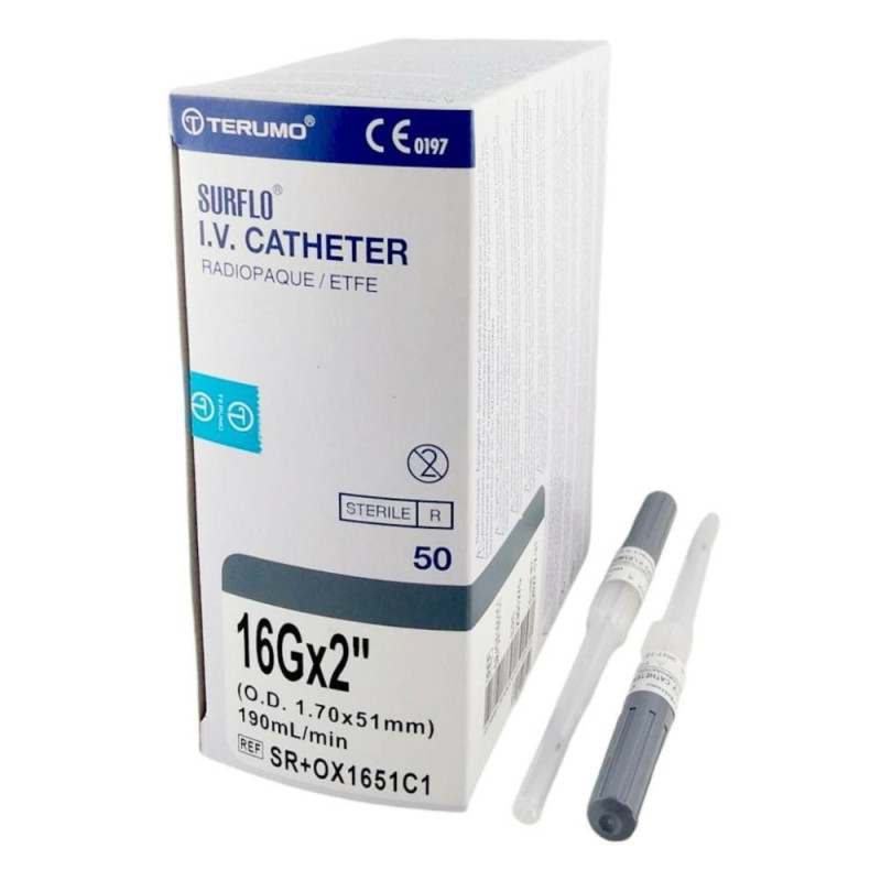 Scegli gli aghi cannula Terumo SURFLO 16G senza alette per un accesso venoso rapido, stabile e ad alto flusso, con materiali sicuri e privi di lattice e DEHP.