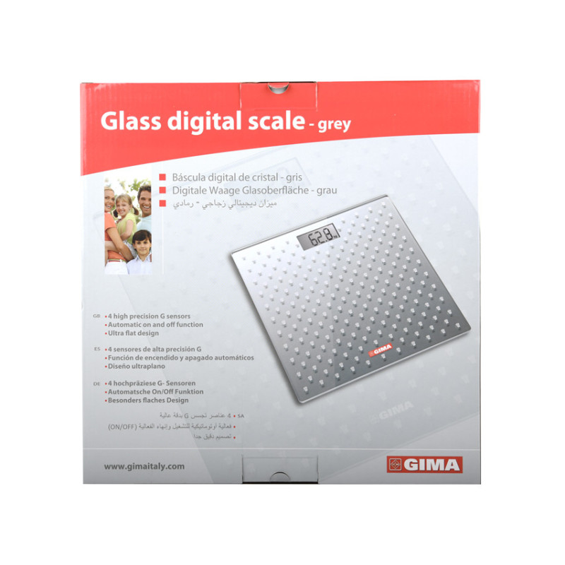 Acquista ora la bilancia digitale in vetro grigia GIMA e porta a casa un prodotto di qualità superiore, ideale per monitorare il tuo peso con precisione e stile.