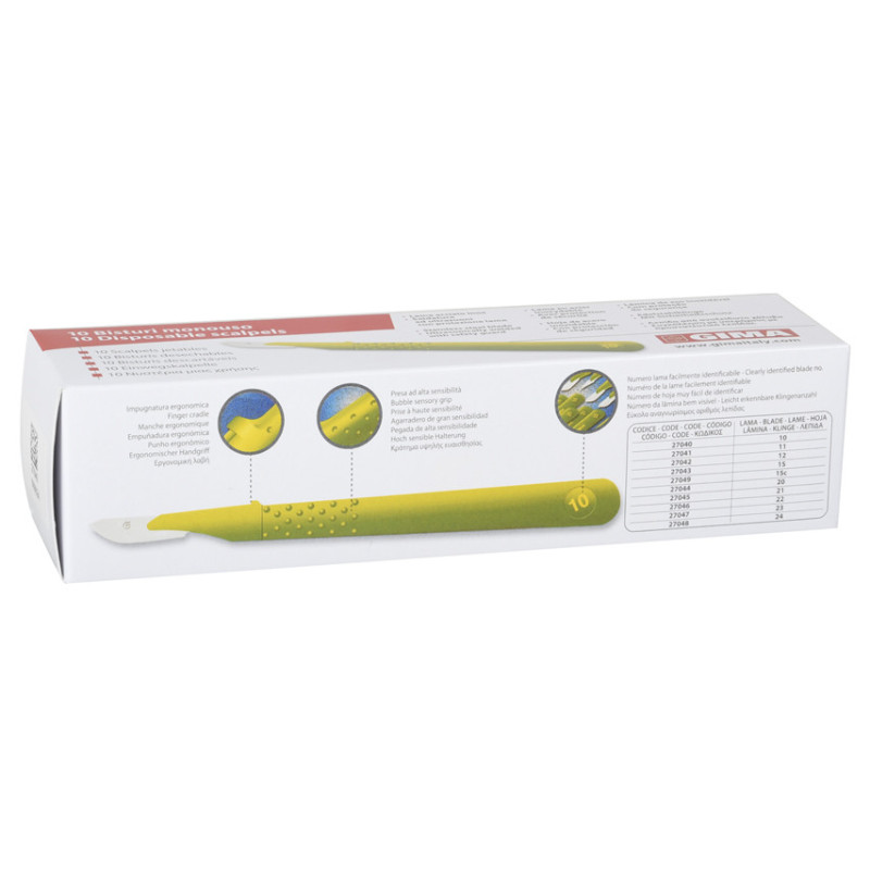 - Sterilità garantita: Ogni bisturi è confezionato singolarmente e sterilizzato, assicurando la massima igiene durante le procedure.