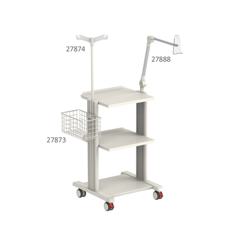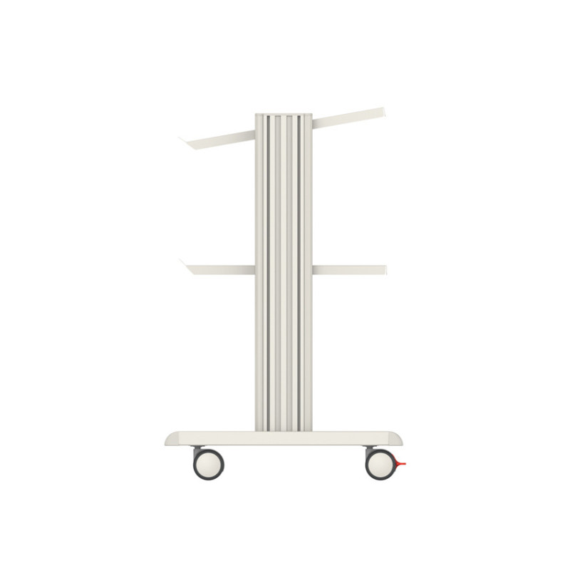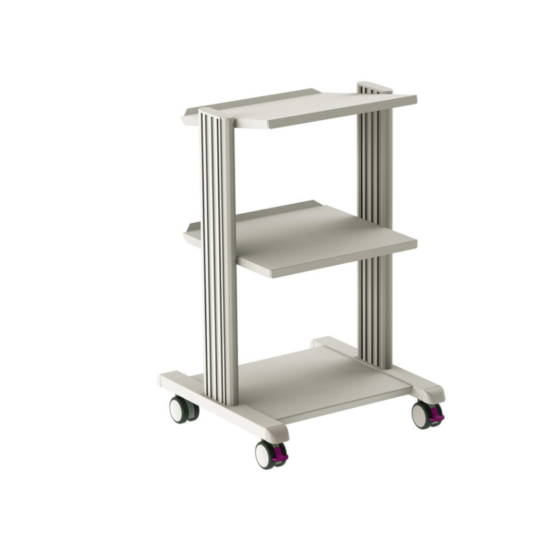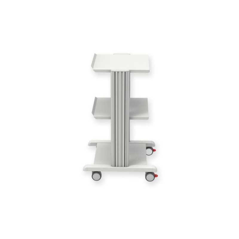 Il Carrello Smart è dotato di colonne in alluminio e 4 rotelle gemellate Ø 65 mm, di cui 2 con freno, che garantiscono una mobilità fluida e sicura. I ripiani sono ampi e resistenti, con una sponda di protezione sul retro per evitare la caduta degli oggetti. Inoltre, il primo ripiano può essere montato orizzontale o inclinato di ±10°, offrendo maggiore flessibilità d'uso.