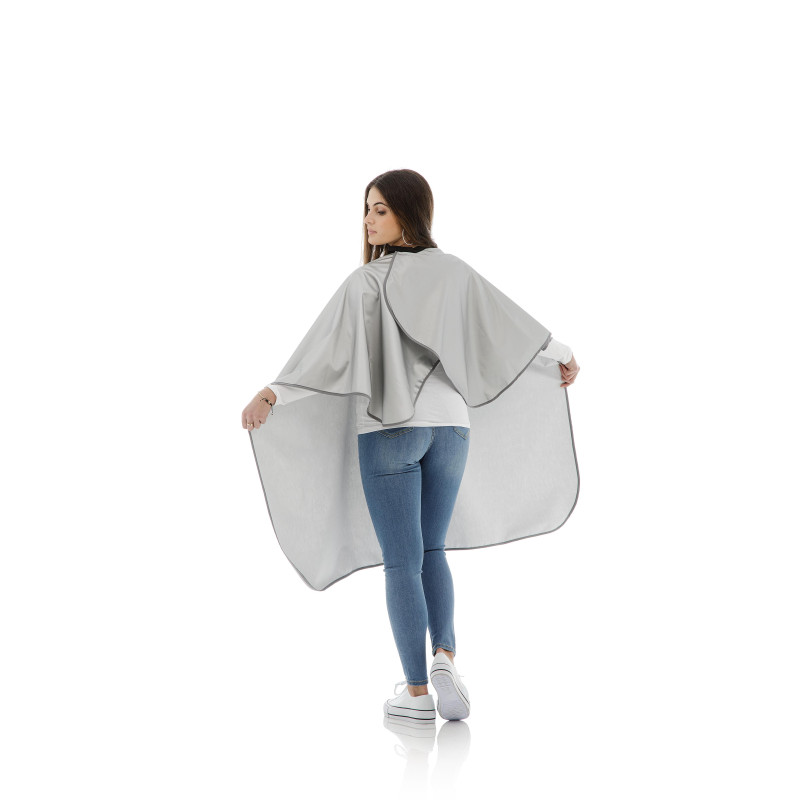 - Idrorepellente: Grazie alla sua speciale finitura, la mantellina respinge l'acqua, mantenendo il tuo cliente asciutto e comodo durante il servizio.