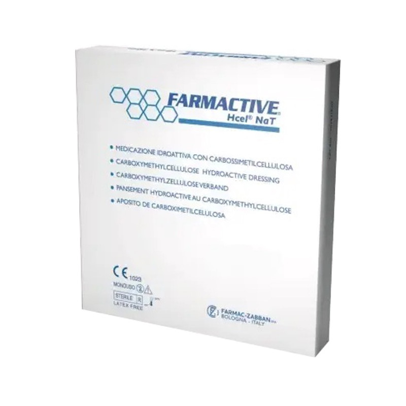 La medicazione Farmactive CMC è un dispositivo medico sterile e idroattivo, composto da fibre gelificanti non tessute di carbossimetilcellulosa sodica pura (NaCMC). A contatto con l'essudato, forma istantaneamente un soffice gel che trattiene i fluidi, mantenendo l'ambiente della lesione umido e favorendo il processo di guarigione.