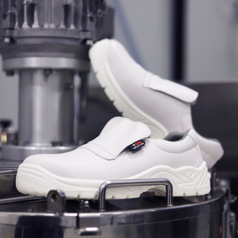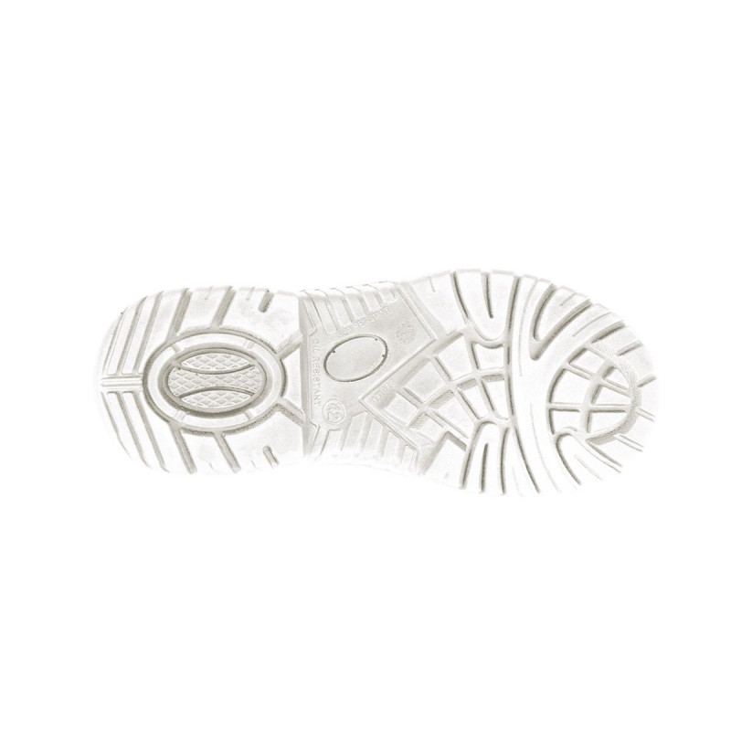 Calzatura di sicurezza bassa, certificata S2, caratterizzata da una tomaia in microfibra bianca idrorepellente e chiusura con velcro. La suola in poliuretano a doppia densità offre sicurezza e comfort ottimali per uso prolungato.